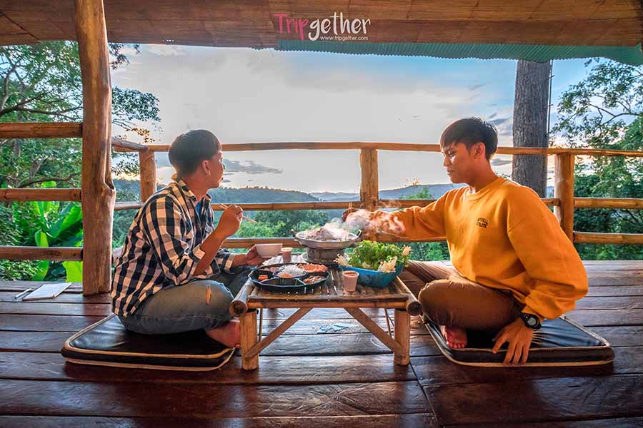 แต่มาเมืองหนาวทั้งทีก็ต้องจัดหมูกระทะสักหน่อย เพื่อบรรเทาความหนาว จากมุมนี้มีพระอาทิตย์ตกให้ดูด้วย โรแมนติกสุดๆ