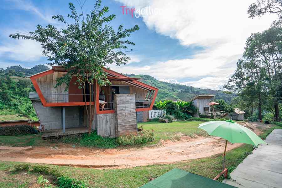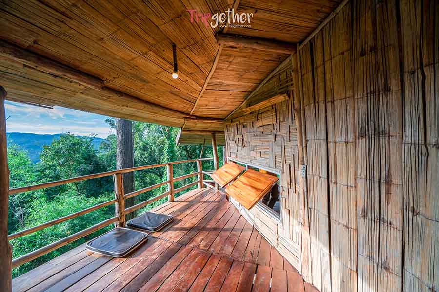 ส่วนบ้านพักนั้น เจ้าของที่นี่ก็ดีไซน์กันเองในแบบโมเดิร์น แต่ก็ไม่ลืมวิถีมิ้งโดยเลือกใช้ไม่ไผ่เป็นวัสดุ มีให้เลือกพักกัน 4 แบบ คือ บ้านรังนก, บ้านรังนกคู่, บ้านมาตรฐาน และ หลังสุดท้ายที่เราจะนอนกันในคืนนี้ บ้านต้นไม้