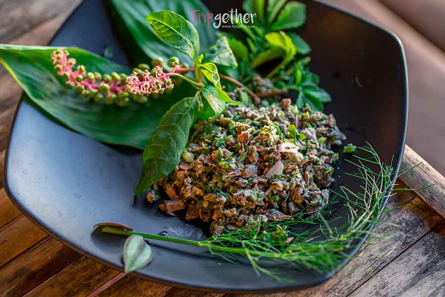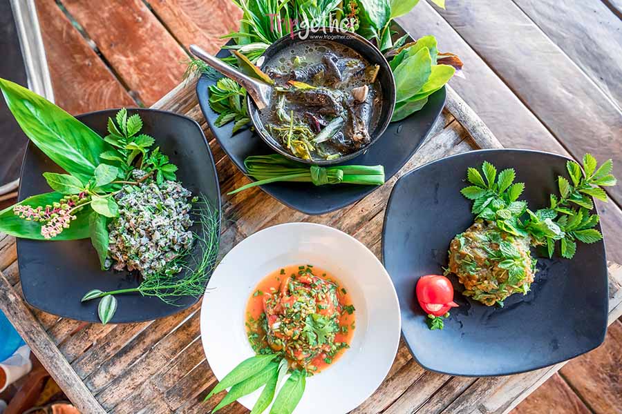 สำหรับมื้อเย็นที่ม่อนม้ง จะมีอาหารพื้นบ้านม้งให้เลือกลิ้มล้องกัน เมนูจะเป็นสไตล์รักสุขภาพเน้นผักและสมุนไพร แต่หากว่าใครอยากฟินกับหมูกระทะก็จัดได้เลย
