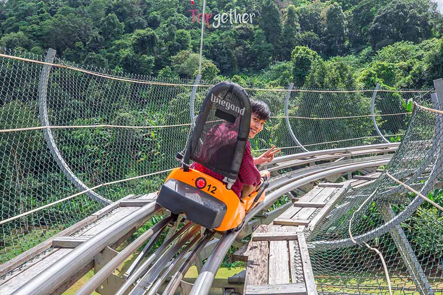 เราเลยจัดเจ้า Jungle Coaster กันสักรอบ เดี๋ยวจะโดนหาว่ามาไม่ถึง เจ้านี้ให้ฟีลคล้ายรถไฟเหาะ สามารถนั่งได้ทั้ง 1 และ 2 คน โดยระยะทางจะประมาณ 800 เมตร ในความเร็ว 40 กิโลเมตรต่อชั่วโมง มีความหวาดเสียวเล็กๆ แต่ปลอดภัยมากเด็กก็สามารถเล่นได้