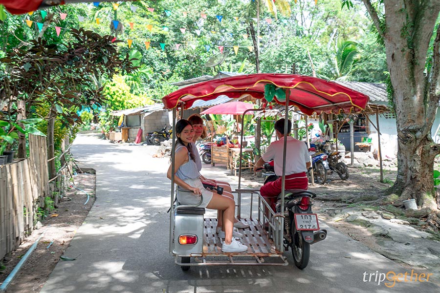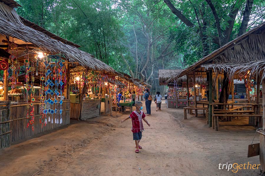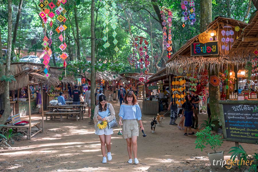 ส่วนการเดินทางไปยังตลาดนั้นแนะนำให้จอดรถที่หน้าหมู่บ้าน แล้วนั่งรถรับ – ส่งเข้าไปยังในตลาดแทน ค่ารถเพียงแค่คนละ 10 บาทเท่านั้น