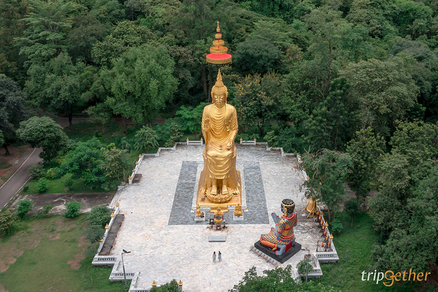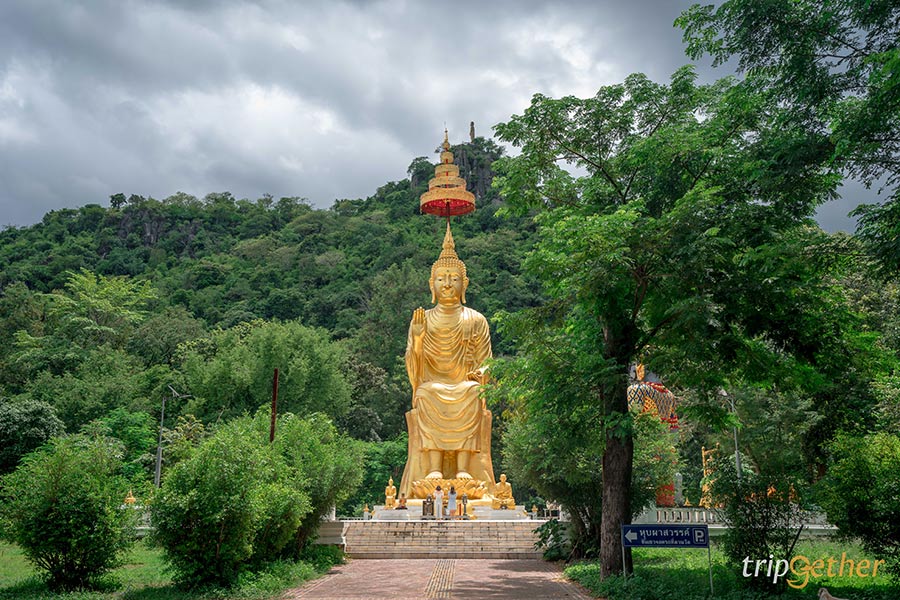นอกจากบนยอดเขาที่มีสิ่งศักดิ์สิทธิ์มากมาย ด้านล่างยังมีพระพุทธรูปองค์โตให้ได้กราบไหว้สักการะเช่นกัน แต่หากใครพอมีเวลาและอยากขึ้นไปพิชิตยอดเขา แนะนำให้เตรียมร่างกายให้พร้อมและเผื่อเวลาการเดินทางสักหน่อย สำหรับทริปนี้เราเน้นเที่ยวสบายๆ ก็เลือกมาไหว้พระพุทธรูปด้านล่าง ขอพรก่อนเริ่มทริปราชบุรีกัน