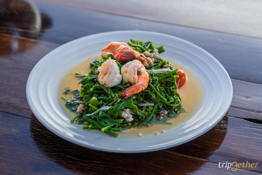 ยำผักกูด น้ำยำกลมกล่อม เผ็ดเบาๆ ผักกูดก็กินง่ายมาก ใบอ่อน ไม่มีรสชาติขม คนไม่กินผักก็กินได้ง่ายๆ ราคาอยู่ที่ 180 บาท