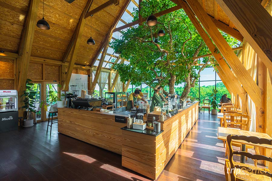 ไฮไลท์ของที่นี่คือวิวธรรมชาติที่สวยมาก มีทะเลสาบขนาดใหญ่และฉากหลังเป็นภูเขาอุดมสมบูรณ์ อีกทั้งตัวคาเฟ่ตั้งอยู่บนเนินสูงทำให้มองเห็นความสวยงามนี้ได้แบบเต็มๆ ตา นอกจากนี้ร้านยังมีมุมถ่ายรูปสวยๆ เพียบ เรียกได้ว่าเดินถ่ายรูปเช็คอินได้ตั้งแต่ทางเข้าร้านเลย