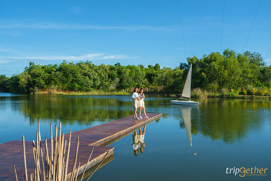 มุมที่ห้ามพลาดก็คือท่าน้ำริมทะเลสาบกับเรือใบสีขาว ที่มาพร้อมกับความเขียวของป่าไม้เป็นพื้นหลัง บอกเลยว่ามุมนี้สวยปังน่าอัปลงโซเชียลมาก