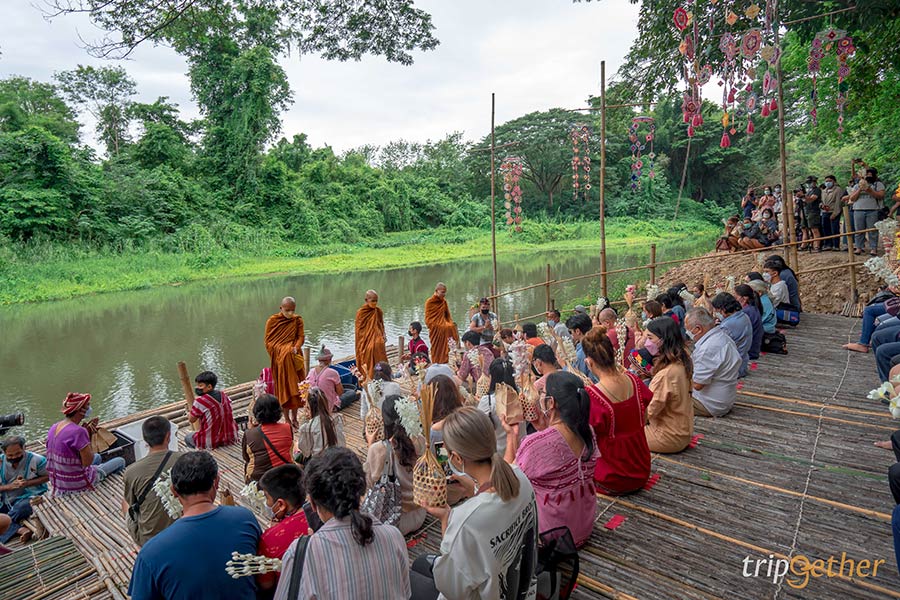 สำหรับใครที่สนใจมาตักบาตรพระล่องแพแนะนำว่าควรมาถึงก่อน 7 โมงเช้า เพราะส่วนใหญ่แล้วพระจะมาถึงประมาณ 07.30 น. ส่วนชุดตักบาตรสามารถหาซื้อได้จากในตลาดราคาอยู่ที่ 49 บาท และดอกไม้ไหว้พระราคา 20 บาท