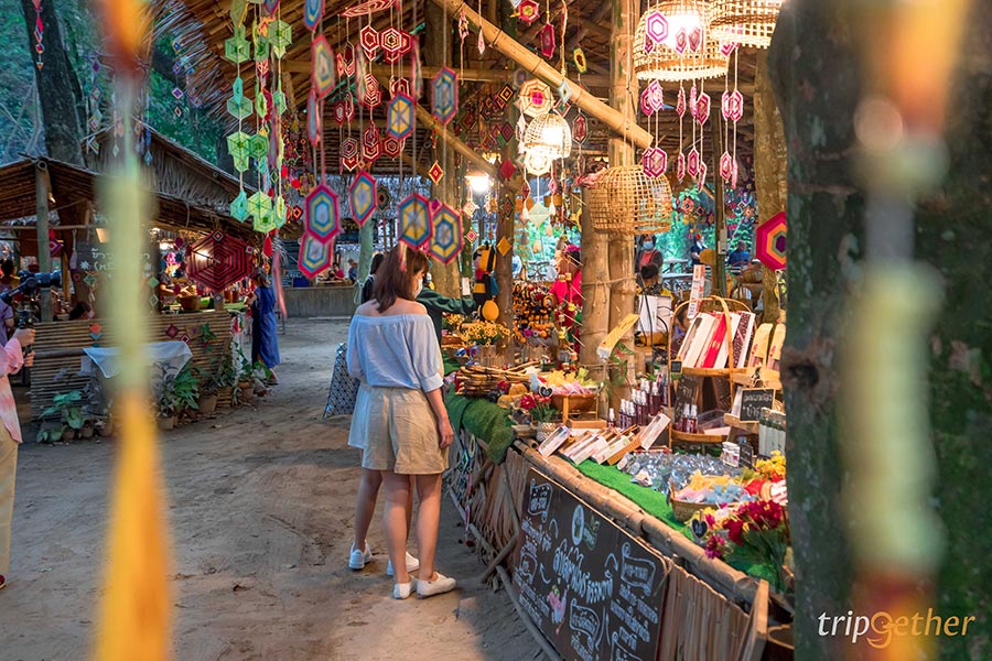 นอกจากของกินแล้วในตลาดยังมีร้านขายของฝากที่เป็นฝีมือจากคนในชุมชน อย่าลืมซื้อกลับไปเป็นของฝากให้คนที่บ้านและถือว่าช่วยอุดหนุนคนในชุมชนด้วย