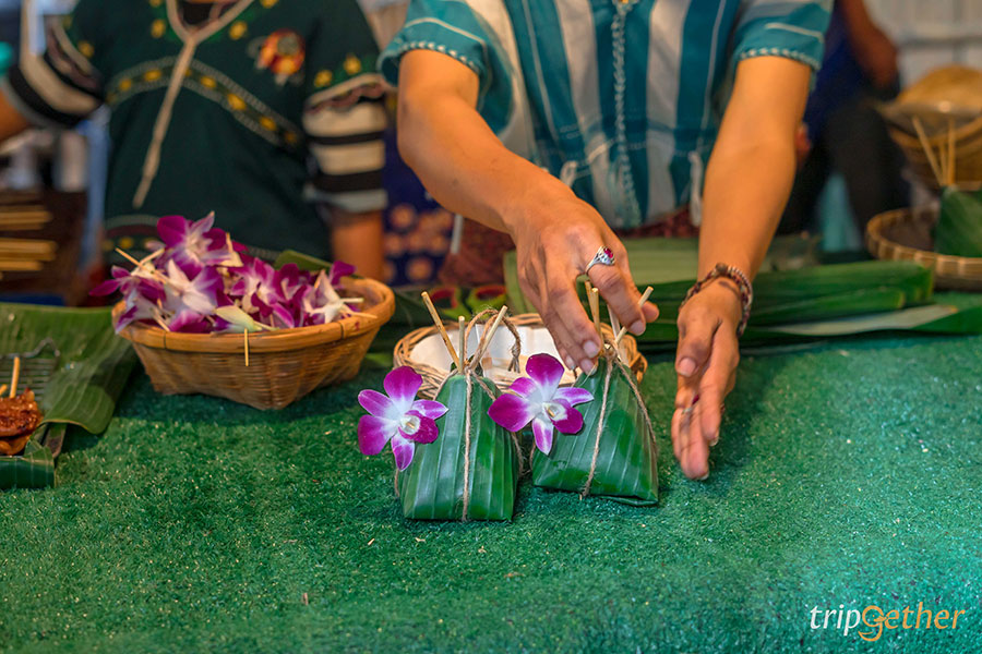 เซ็ตข้าวเหนียวหมูปิ้งอันนี้ไอเดียดีมากๆ ห่อด้วยใบตองอย่างประณีตสวยงาม