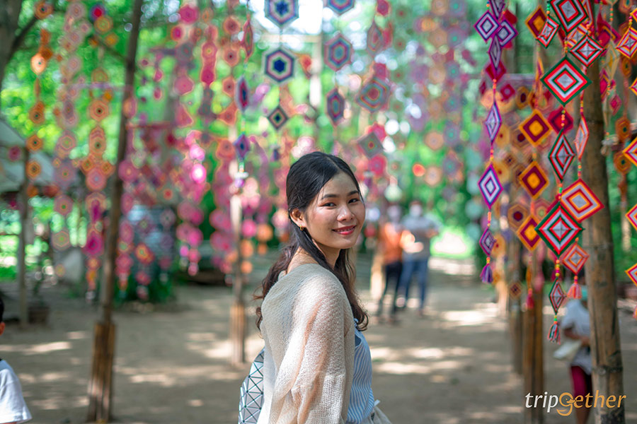 ตลอดทางเดินทั้งสองข้างทางมีรั้วไม้ไผ่อยู่เรียงราย นี่ก็เป็นอีกมุมถ่ายรูปเก๋ๆ ที่ใครมาก็ต้องเช็คอิน อีกทั้งยังมีพร็อพน่ารักๆ ที่สามารถกดชัตเตอร์ได้รัวๆ
