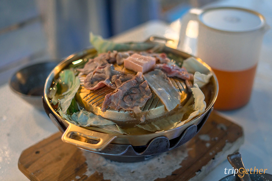 เก็บของและนอนเล่นกันสักพักท้องก็เริ่มร้อง บวกกับวันนี้เรายังไม่ได้กินอะไรจริงๆ จังๆ ดังนั้นมื้อเย็นนี้ก็ขอจัดเต็มด้วยหมูกระทะจุกๆ สักมื้อ ซึ่งหมูกระทะนี้สามารถสั่งจากทางที่พักได้โดยตรง ราคาอยู่ที่ 350 บาท ได้หมูหมักชิ้นหนาๆ หมูสไลด์ และหมูสามชั้น รวมถึงมีผักและวุ้นเส้นในเซ็ตเดียวกัน น้ำจิ้มมีให้เลือก 3 แบบก็คือ น้ำจิ้มสุกี้ น้ำจิ้มแจ่ว และน้ำจิ้มซีฟู้ด บอกเลยว่าเมนูหมูกระทะกับมื้อเย็นเป็นสิ่งที่ห้ามพลาดเด็ดขาด