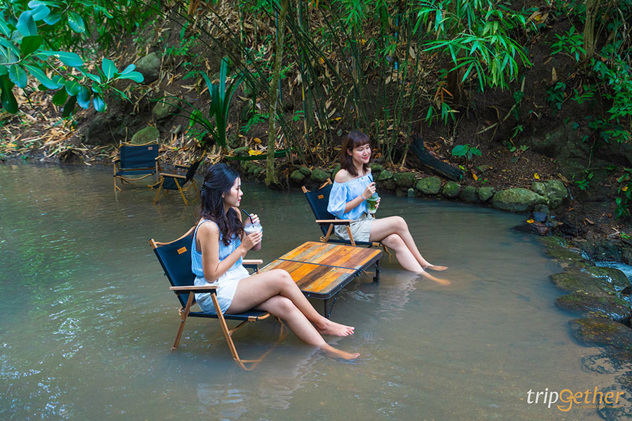 อยากใกล้ชิดธรรมชาติเข้าไปอีกก็ต้องไปนั่งจุ่มเท้า แช่น้ำเย็นๆ กลางลำธาร ที่บอกเลยว่าชุ่มฉ่ำสุดๆ นอกจากจะมานั่งชิลล์ๆ แล้ว ตรงนี้ก็เป็นอีกมุมถ่ายรูปสวยๆ ท่ามกลางธรรมชาติด้วย