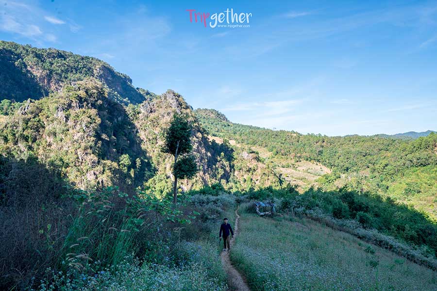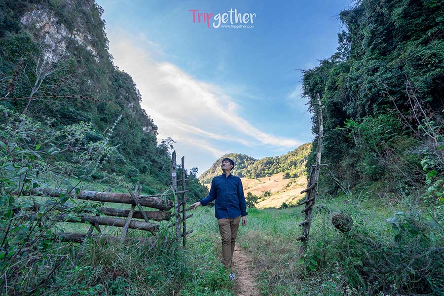 จากนั้นเราได้ยินมาว่าหมู่บ้านแห่งนี้ก็มีกิจกรรมให้ทำมากมาย ทั้งการเดินป่า ทอผ้า เรียนรู้วิถีชีวิตลาหู่ในแบบต่างๆ ซึ่งแต่ละกิจกรรมอาจต้องติดต่อล่วงหน้ามาก่อน แต่มีหนึ่งเส้นทางที่เราสามารถเดินได้เองไม่ต้องพึ่งไกด์ นั่นก็คือ ถ้ำผีแมน