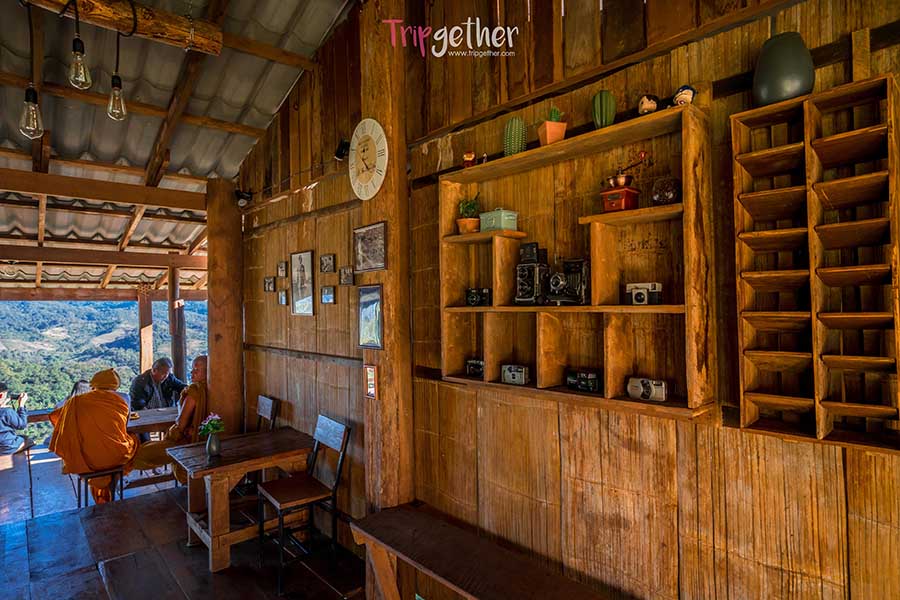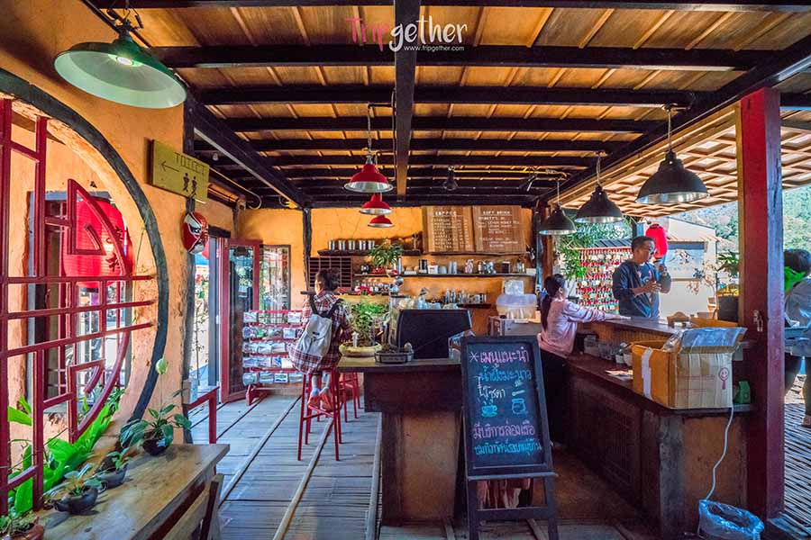 มุมนั่งมีไม่เยอะเท่าไหร่ แต่เด็ดทุกที่ มุมเด็ดก็ต้องยกให้ระเบียงลอยฟ้า ซึ่งจากมุมนี้เรียกว่าชมวิวกันแบบเต็มๆ และที่สำคัญเจ้าของร้านเป็นกันเองสุดๆ เราเลยได้ข้อมูลของหมู่บ้านเพิ่มเติมเยอะเลยทีเดียว