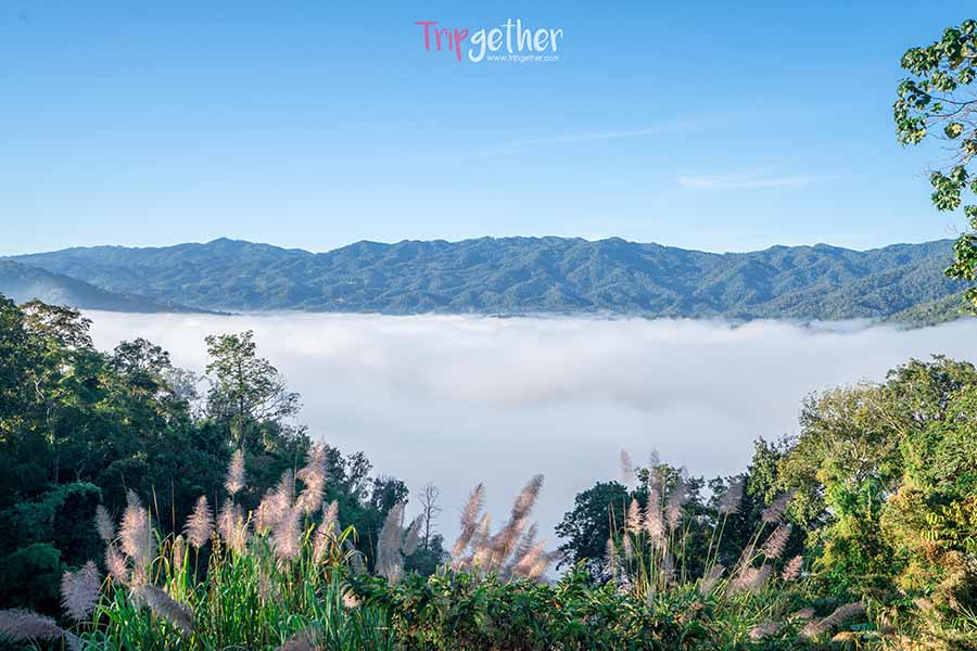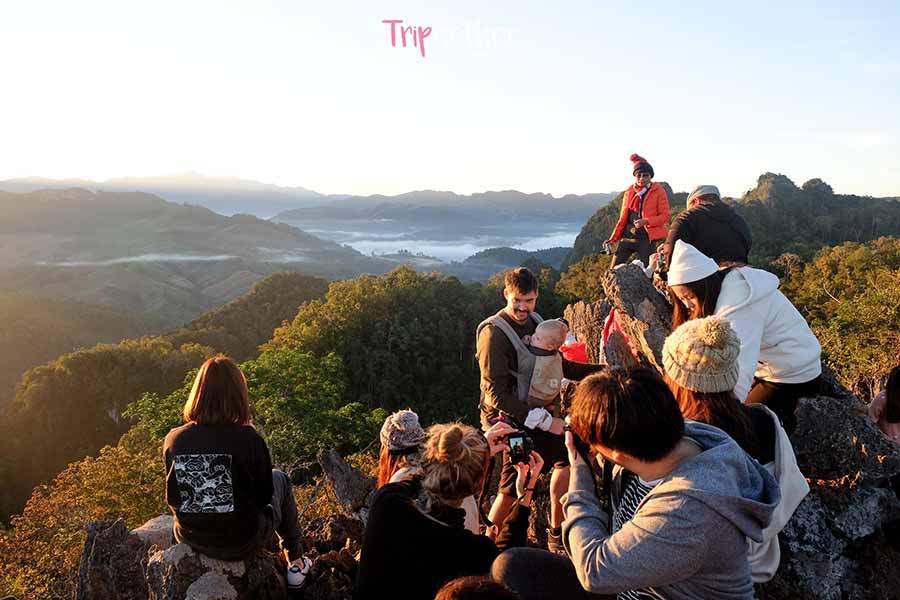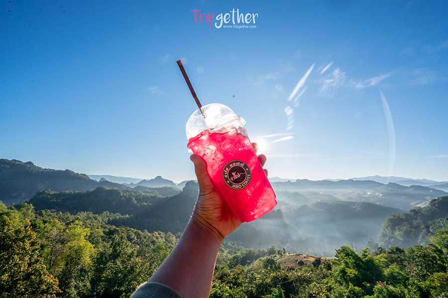 จากนั้นเราลงชมวิวกันต่อที่ จุดชมวิวบ้านจ่าโบ่ และกินมื้อเช้ากันที่ ก๋วยเตี๋ยวห้อยขาจ่าโบ่
