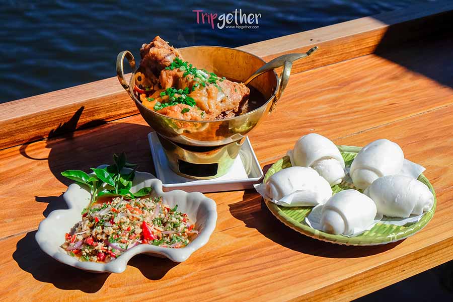 ส่วนเมนูที่ต้องไม่พลาดก็คือ ขาหมู หมั่นโถ่ว เสริฟแบบเดือดๆ 390 บาท และเมนูยำใบชา 140 บาท รสชาติเข้มข้นถูกใจสุดๆ กินเสร็จแนะนำให้เดินเล่นรอบหมู่บ้าน จิบชากันเพลินค่อยขับรถกลับ ปิดทริปได้อย่างนา่ประทับใจอย่างแน่นอน