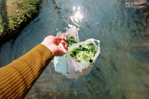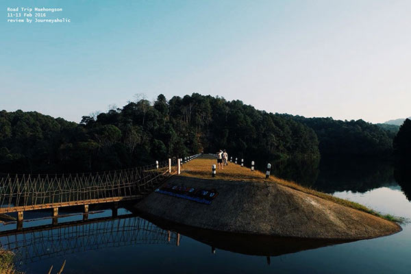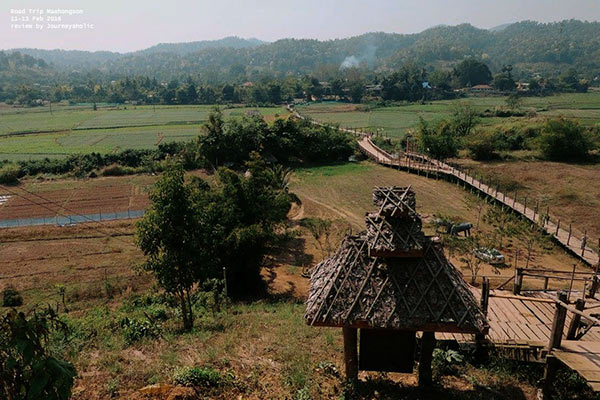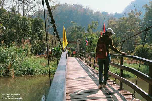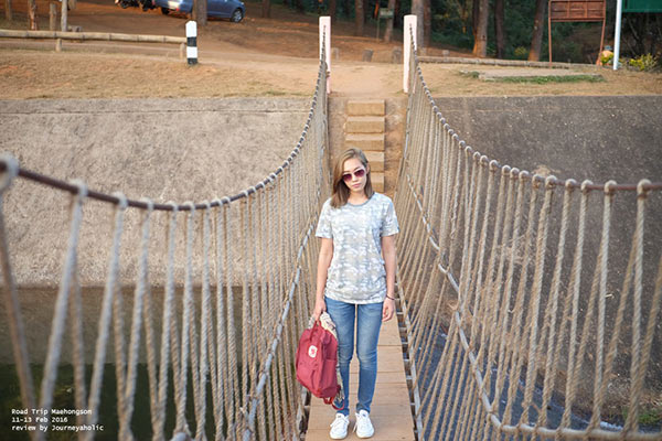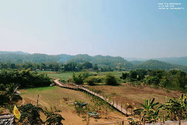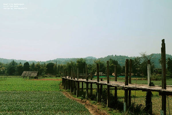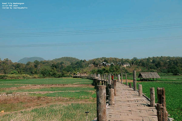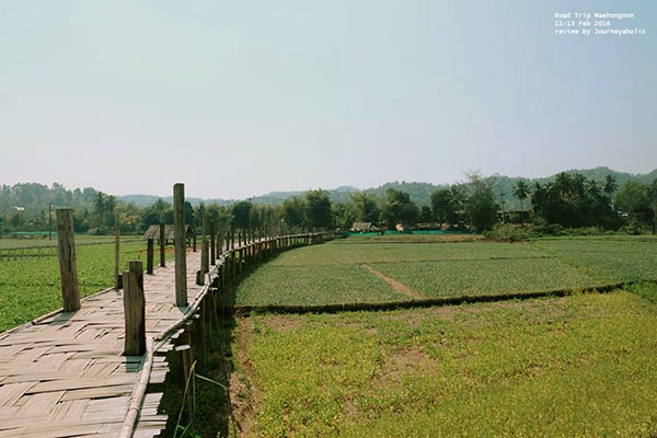 บอโคลนค่ะ เราเห็นเดินปุดๆตลอดเวลาเลย ด้านข้างเขียนไว้ว่า อุณภูมิภายในบ่อ 70 องศา แล้วก็มีกลิ่นแปลกๆ น่าจะเป็นกลิ่นกำมะถัน แล้วไปต่อกันที่ ซูตองเป้ สะพานไม้แห่งศรัทธาตั้งอยู่ที่บ้านกุงไม้สัก ห่างจากตัวเมืองประมาณ 8 กม. ซูตองเป้ เป็นภาษาไทใหญ่แปลว่า อธิษฐานสำเร็จ ซึ่งมีความเชื่อกันว่า หากได้มายืนอยู่กลางสะพานแล้วอธิษฐานขอความ ความสำเร็จใดๆ ก็จะพบกับความสมหวัง เหตุผลที่เรียกว่าสะพานไม้แห่งศรัทธานั้นก็เพราะ การร่วมแรงร่วมใจของพระภิกษุสงฆ์และชาวบ้านกุงไม้สัก ที่ต่างก็ช่วยกันลงแรงสานพื้นสะพานด้วยไม้ไผ่ทอดยาว ไปบนที่นาของเจ้าของที่อุทิศผืนนาถวาย โดยสร้างเพื่อเชื่อมต่อระหว่างสวนธรรมภูสมะและหมู่บ้านกุงไม้สัก ข้ามผ่านทุ่งนา และแม่น้ำสายเล็กๆ เพื่อให้พระภิกษุสงฆ์และชาวบ้านที่อยู่อีกฝั่งได้ใช้สัญจรไป มาระหว่างหมู่บ้านได้สะดวกยิ่งขึ้น