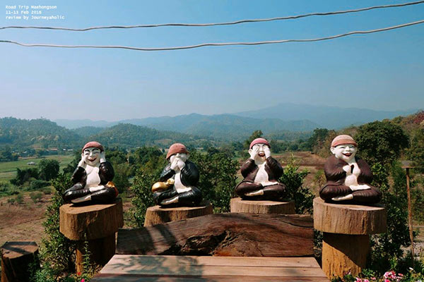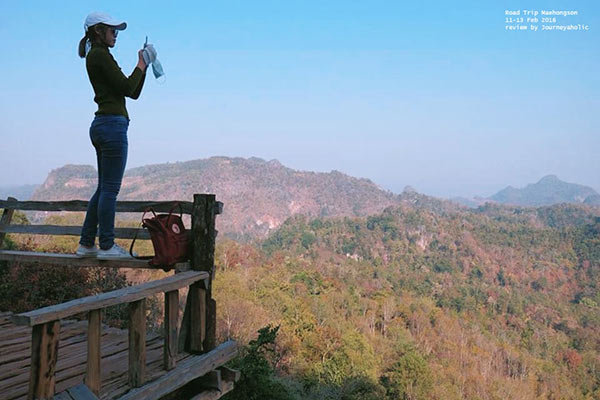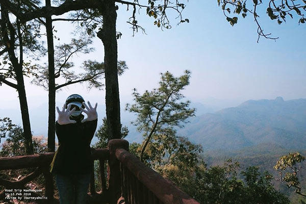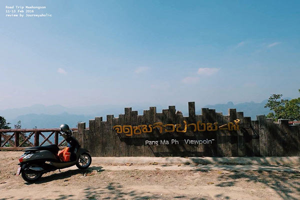 แวะพักรถ พักคนอีกครั้งที่จุดชมวิวปางมะผ้า ที่นี่มีกาแฟสดนะคะ แต่เราไม่ถนัด ขอจัดสปอนเซอร์ดีกว่า ตอนนั้นบอกตรงๆว่าเหนื่อยมาก ไม่เคยขี่รถไกลและนานขนาดนี้ ถึงกับล้มตัวลงนอนหลังป้ายจุดชมวิวเลยล่ะค่ะ คือมันง่วง มันเพลีย แต่มาไกลถึงขนาดนี้แล้ว ยังไงก็ต้องไปต่อค่ะ
