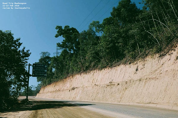 มุ่งหน้าสู่เมืองปาย เราจะไปกินข้าวกลางวันกันที่นั่นค่ะ ระหว่างทางก็มีถนนที่กำลังสร้างใหม่ แล้วก็ปรับปรุงเรื่องไหล่ทางอยู่เป็นระยะๆ ฝุ่นค่อนข้างเยอะ แว่นตากับผ้าปิดปาก ช่วยเราได้มากค่ะ