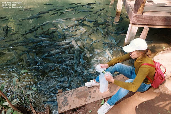 จากที่เมื่อเช้า 10 องศา ดูแดดตอนนี้สิ่ค่ะ อากาศสวิงมากค่ะแม่ฮ่องสอน เสื้อสามชันที่ใส่มาถอดแทบไม่ทันเลย อุทยานแห่งชาติถ้ำปลา จอดรถด้านหน้าแล้วเดินเข้าไปประมาณ 500 เมตรค่ะ