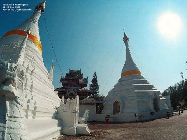 เจอรถคันนี้ เป็นรถสองแถวจากปายไปแม่ฮ่องสอน เลยแอบถามราคาเค้ามา เค้าบอกว่า จากปายไปแม่ฮ่องสอนก็ 100 บาทค่ะ ในที่สุดก็ถึงตัวเมืองแม่ฮ่องสอนค่ะ เราถึงกับนับเลขหลักกิโลมาตลอดทางเลย จริงๆจะไม่เข้ามาในตัวเมืองก็ได้นะคะ เพราะว่าทางเข้าปางอุ๋งจะอยู่ถึงก่อนตัวเมืองค่ะ แต่ที่เราเข้ามาตัวเมืองก่อน ก็เพราะมาแม่ฮ่องสอนทั้งที จะพลาดที่นี่ได้ยังไงล่ะค่ะ พระธาตุดอยกองมู พระธาตุคู่บ้านคู่เมืองแม่ฮ่องสอน แวะมาสักการะสิ่งศักดิ์สิทธิ์เพื่อเป็นสิริมงคลกันก่อนค่ะ