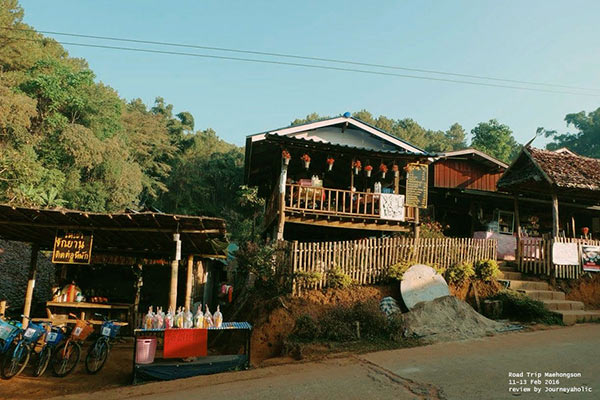 โฮมเสตย์ของชาวบ้านที่ตั้งอยู่บริเวณก่อนทางเข้าค่ะ มีทั้งร้านกาแฟ ร้านหมูกะทะ