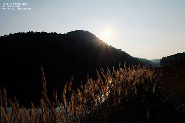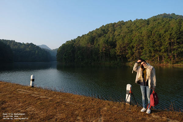 เอาของมาเก็บที่เต๊นท์เรียบร้อย ออกไปถ่ายรูตรงสันเขื่อนกันดีกว่าค่ะ พระอาทิตย์ใกล้ตกแล้ว แสงกำลังสวยเลยยยย