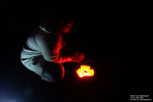 ใช้วัสดุอุปรณ์ที่เหลือให้เป็นประโยชน์ก่อน ถ่านก็เหลืออีกเพียบ นั่งผิงไฟ ดูดาว เคล้าน้ำค้าง ฮ่าๆๆ (นี่เพื่อนร่วมกะทะเราเองค่ะ หาได้แถวๆข้างทาง) อีกอย่างที่พีคสุดๆในค่ำคืนนี้ก็คงจะเป็น แสงจันทร์กับแสงดาวบนฟ้านี่หละค่ะ
