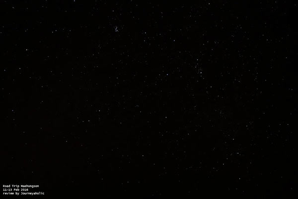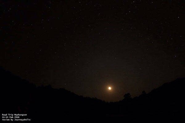 สวยจนบอกไม่ถูก และเยอะจนนับไม่ไหวบ้านเราอยู่ต่างจังหวัดเหมือนกัน ชอบนั่งดูดาวเป็นปกติอยู่แล้ว แต่ดาวที่เราเคยเห็นมันไม่ใช่แบบนี้ มันบอกไม่ถูกจริงๆ มันยิบยับเจ็มฟ้าไปหมด ถึงแม้จะมีแสงจากดวงจันทร์ส่องสว่างอยู่บ้าง แต่ก็ไม่อาจทำให้แสงจากดวงดาวสว่างน้อยลงเลย นั่งถ่ายรูปดาว รูปท้องฟ้าอยู่เป็นชั่วโมงๆจนอยู่ไม่ไหว อากาศเย็น และน้ำค้างแรงมากจริงๆ เต๊นท์กับฟรายชีท ก็ช่วยได้น้อยนิด