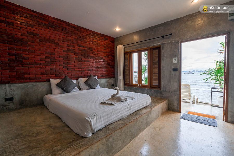 นั่งกินกันจนเพลิน เกือบลืมเวลา เหลือบมองนาฬิกาแล้วก็ได้เวลาเช็คอินเข้าห้องพักพอดี และนี่คือห้องที่เราจะนอนกันในคืนนี้ Deluxe Seaview 12 บอกเลยว่า วิวจัดเต็มมาก ห้องพักอยู่ด้านในสุดของที่พักเห็นวิวทะเลได้แบบ 180 องศา ภายในห้องพักกว้างขวางมีพื้นที่ใช้สอยเยอะมาก มาพร้อมเตียงคิงไซส์หนานุ่มนอน 2 คนสบายๆ ค่ะ แถมยังเป็นส่วนตัวอีกด้วย