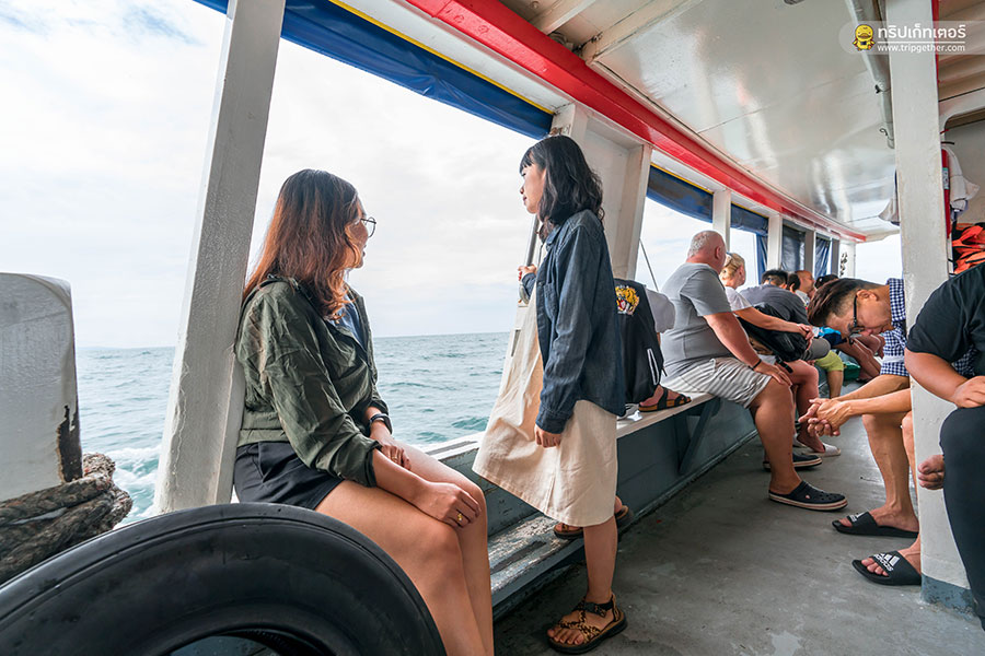 หลังจากฝากรถเสร็จแล้ว เราก็รีบพุ่งตัวไปขึ้นเรือรอบ 09.30 น. ถ้าจะขึ้นเรือสามารถเดินเข้ามาด้านในสุดของท่าเรือแหลมบาลีฮายเลยนะคะ จะมีเรือจอดอยู่และคนเดินกันอยู่เต็มบริเวณเลยค่ะ ค่าโดยสารเรือข้ามฟากราคาคนละ 30 บาท จ่ายเงินตรงทางขึ้นเรือได้เลยค่ะ จ่ายเสร็จก็สามารถขึ้นไปนั่งรอบนเรือได้เลย และเมื่อคนเต็มแล้วเรือก็จะออกเดินทางไปยังเกาะล้าน ลุยโลด!!