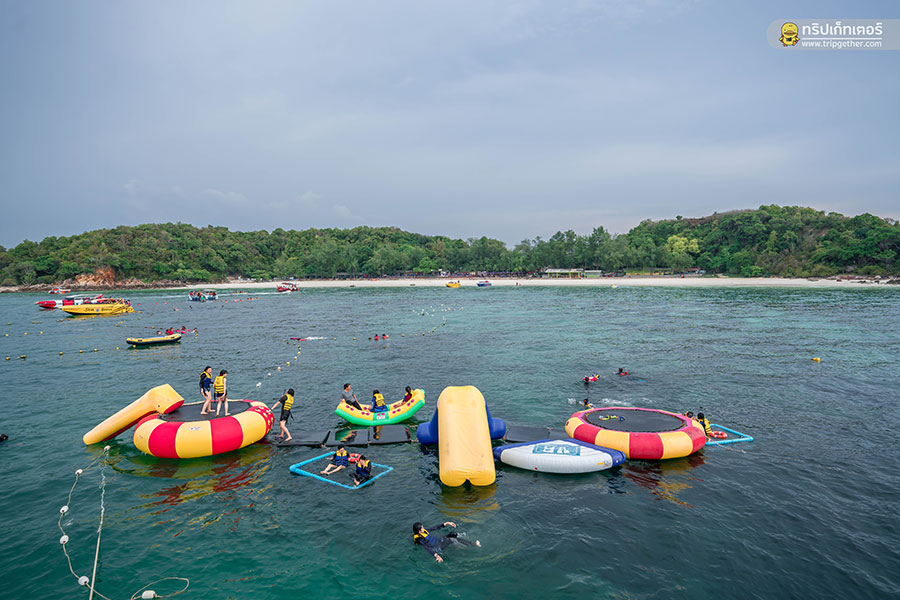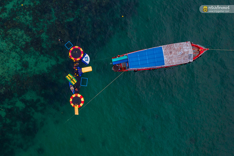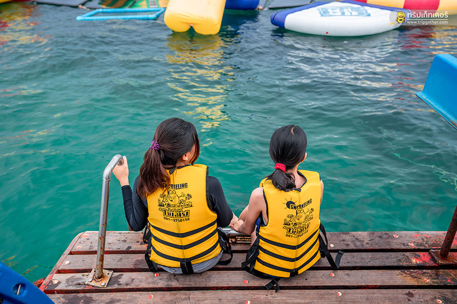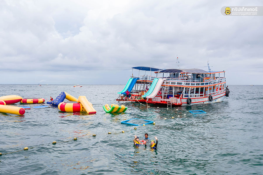 นอกจากจะได้ดำน้ำตื้นแล้วยังมีเครื่องเล่นกลางทะเลให้เล่นกันอีกด้วยนะ มีทั้งสไลด์เดอร์ แทรมโพลีน และอีกมากมายให้ได้เล่นกันแบบอิ่มหนำสำราญใจสุดๆ