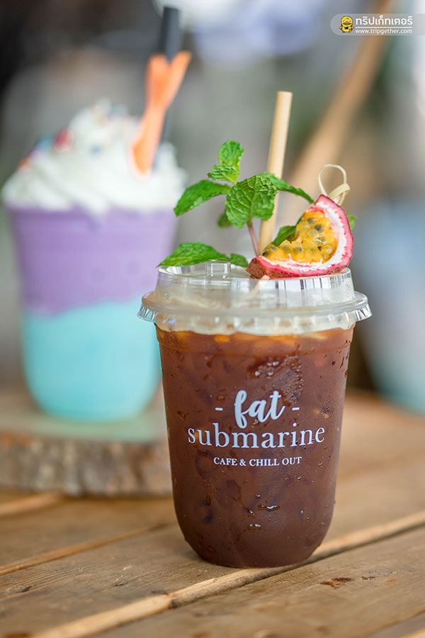 หลังจากเดินเล่นถ่ายรูปกันมาพักใหญ่แล้ว ตอนนี้ก็เที่ยงวันพอดี เราจึงพากันแว๊นรถมอเตอร์ไซค์กลับไปยังที่พักเพื่อเช็คเอาท์ แต่เมื่อวานยังไม่ได้รูปไปเปลี่ยนโปรไฟล์ใหม่เลย เราจึงพากันไปนั่งชิลล์ที่คาเฟ่สุดน่ารัก FAT SUBMARINE Cafe & Chillout คาเฟ่สุดเก๋ตกแต่งเรียบง่ายที่มีโลเคชั่นดีมาก ตั้งอยู่หน้าวัดใหม่สำราญ สามารถเดินจากท่าเรือหน้าบ้าน เพียง 5 นาทีก็ถึง