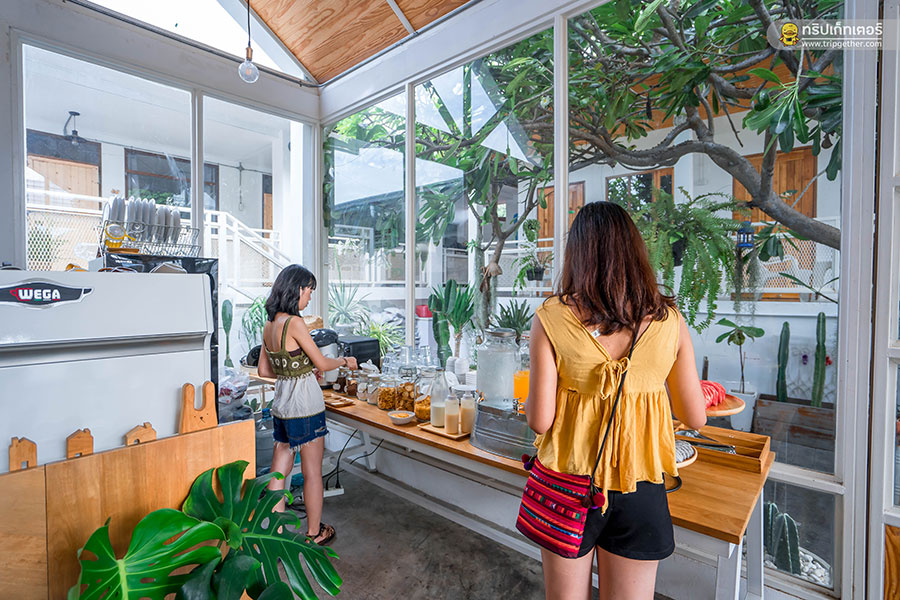โดยอาหารเช้าที่บ้านรินรักษ์จะจัดมาเป็นเซ็ตแบบ American Breakfast หรือหากใครไม่อยากทานเซ็ตอาหารเช้า ก็สามารถสั่งเป็นไข่กระทะได้ค่ะ