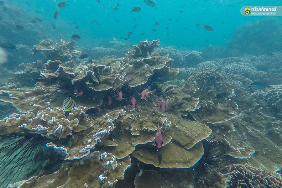 น้ำทะเลที่เกาะสากใสมาก มองเห็นปะการังได้อย่างชัดเจน สวยงามมาก