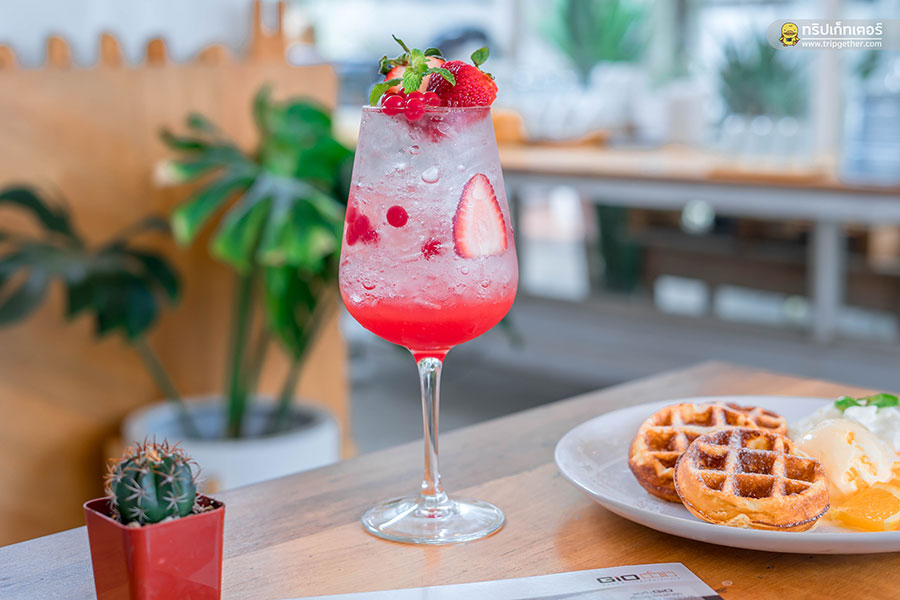 เราสั่งขนมมากินกันก็นิดๆ หน่อยๆ ตามแบบฉบับสาวๆ ค่ะ ซึ่งเมนูของที่นี่ก็จะมีทั้งเครื่องดื่มและของหวาน เราเลือกสั่ง วาฟเฟิลกับบราวนี่ และเครื่องดื่มก็สั่งเป็นสตรอว์เบอร์รี่โซดา และลาเต้ร้อน นั่งกินเล่นกันไประหว่างรอเข้าห้องพักค่ะ