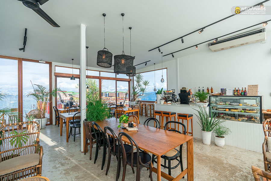 ภายในร้านมีโซนให้เลือกนั่งทั้ง In Door ในห้องแอร์เย็นฉ่ำ หรือหากใครชอบนั่งชิลล์ริมทะเลที่นี่เค้าก็จัดให้ บรรยากาศริมทะเลนั้นดีมากๆ บอกเลยว่าใครได้มาที่นี่จะต้องได้รูปสวยๆ กลับไปแน่นอน