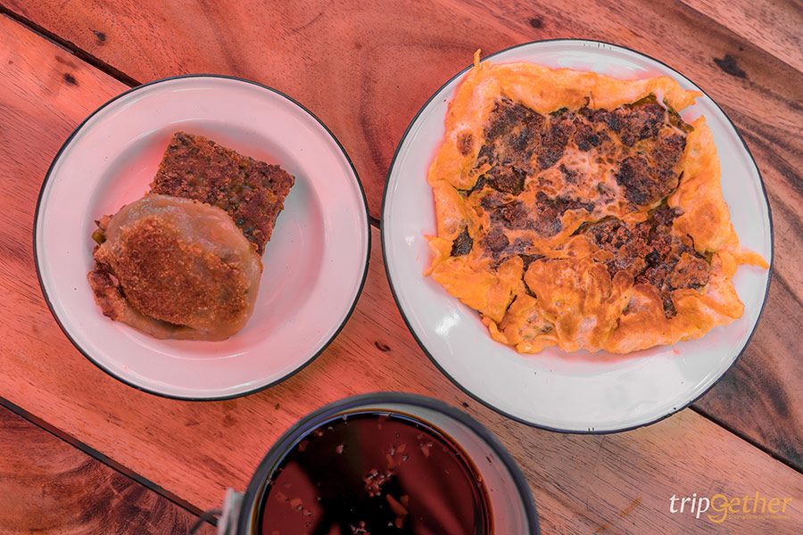 นั่งรอที่โต๊ะเพียงแป๊บเดียวก็มาแล้ววว~ กุยช่ายที่เราสั่งในวันนี้มี 3 อย่างด้วยกัน เริ่มด้วยกุยช่ายกลมและกุยช่ายเหลี่ยม ราคาชิ้นละ 15 บาท เนื้อแป้งกุยช่ายบางๆ ข้างในไส้กุยช่ายแน่นๆ ตักมาราดกับน้ำจิ้มรสเด็ด อร่อยเข้ากันสุดๆ และอีกเมนูที่แนะนำต้องสั่งก็คือ กุยช่ายตอกไข่ ราคา 45 บาท บอกเลยว่าอร่อยมากกก มีกลิ่นหอมของไข่และความนัวๆ กินเข้ากับกุยช่ายเข้ากันมาก