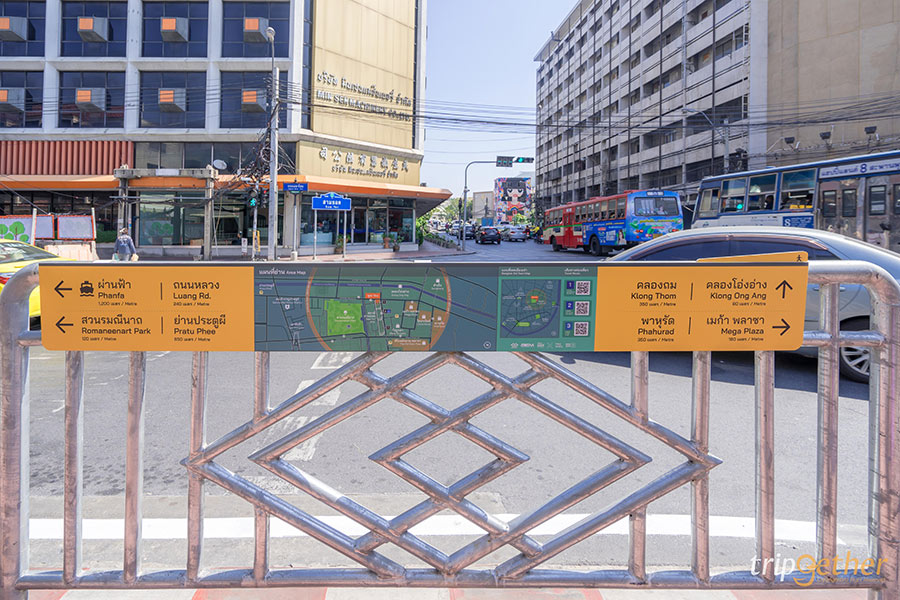 เดินออกมาจากสถานีก็จะมีแผนที่บอกทางแบบนี้ ซึ่งการจะไปสำเพ็งสามารถไปได้ 2 ทางก็คือคลองโอ่งอ่างและเมก้า พลาซา