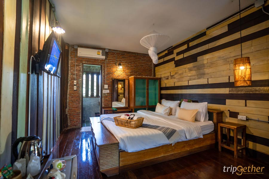 เดินทางมาทั้งวันแล้ว ถึงเวลาเข้าเช็คอินที่พัก เราได้ทำการจองที่พักชื่อว่า “เฮือนช้างเผือก” โรงแรมเล็กๆ แต่เต็มไปด้วยรายละเอียดกับสไตล์ที่ชัดเจนสุดๆ คือจะเป็นเรือนไม้ และชั้นล่างจะเป็นปูนเปลือยให้ความรู้สึกใกล้ชิดกับธรรมชาติเหมาะแก่การมาพักผ่อนมาก และที่สำคัญที่พักของเราอยู่ใจกลางเมืองเดินทางสะดวกมากค่ะ