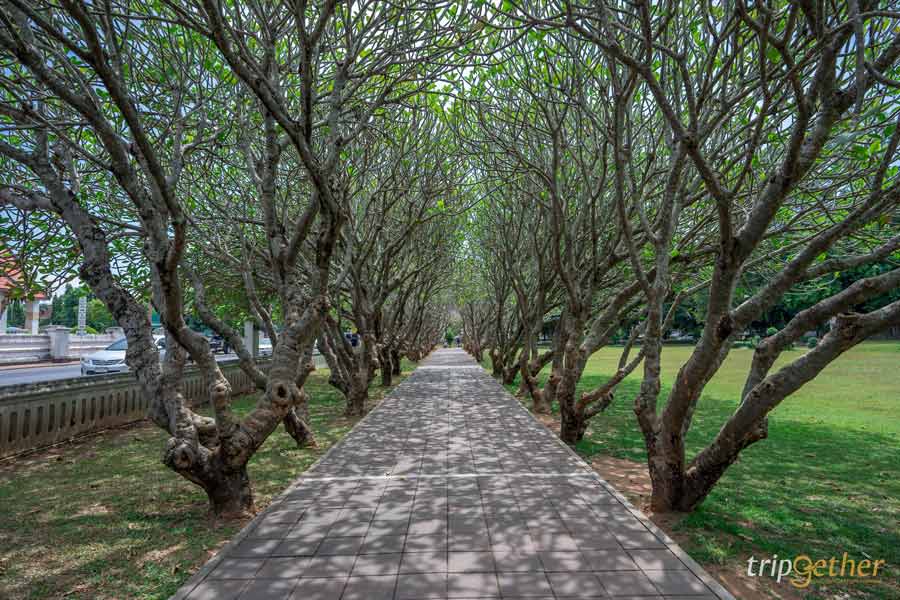เดินมาจนถึงซุ้มดอกลีลาวดีในตำนานที่ไม่ว่าใครจะมา เที่ยวน่านในเมือง ก็ต้องมาถ่ายรูปที่นี่เพราะมีต้นดอกลีลาวดีที่ออกดอกสีขาวไปทั่วต้นตัดกับสีของท้องฟ้าและใบไม้ทำให้ความทรงจำของทริป เที่ยวน่านในเมือง นี้มีแต่เรื่องราวดีๆ หลงรักน่านสุดๆ เลยค่ะตอนนี้