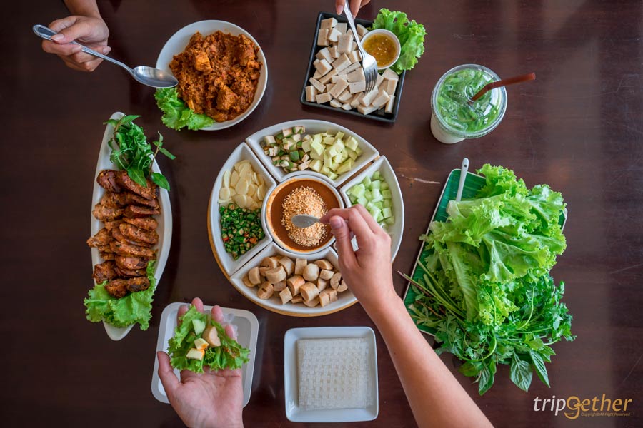 และมื้อกลางวันของทริปที่แสนจะสดใสนี้เราอยู่กันที่ ร้านอาหาร ณ เสน ที่มีทั้งอาหารเมืองและอาหารเวียดนามเราสั่งทั้งเซ็ตแหนมเนืองกับไส้อั่ว ปรากฏว่าเข้ากันได้ดีมากค่ะ ยิ่งกินกับผักสดของทางร้านรสชาติอร่อยอย่าบอกใครเลย ทางร้านมีกาแฟเครื่องดื่มสดชื่นให้บริการด้วย