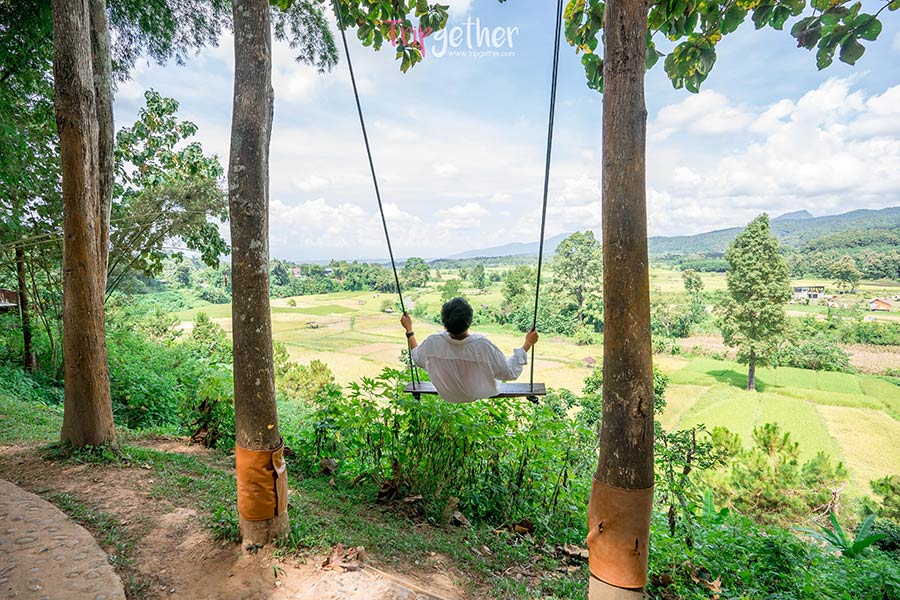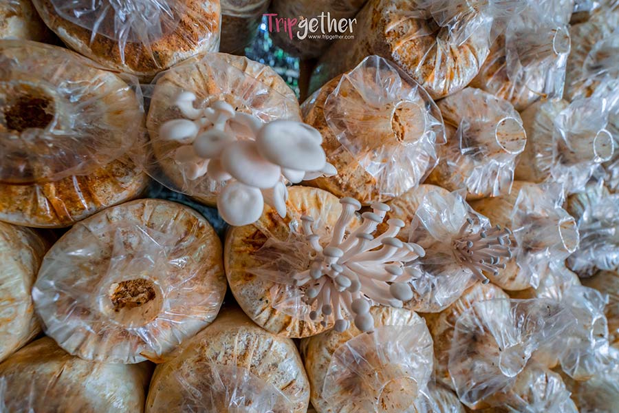 นอกจากเมนูอร่อยๆ ที่นี่ยังมีฟาร์มเห็ดให้เราได้เที่ยวชมเพลินๆ ระหว่างรอคิว รออาหารกันด้วย เพราะร้านนี้นักท่องเที่ยวค่อนข้างเยอะและอาหารออกช้า หรือถ้าใครอยากได้รูปเก๋ๆ ที่นี่ก็มีชิงช้าให้เราได้โพสต์ท่ากันเท่ๆ กันอีกด้วยนะ