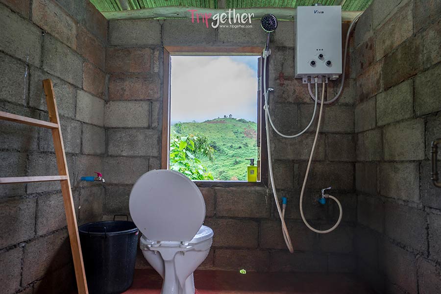 ห้องน้ำที่นี่เป็นห้องน้ำรวม มีเครื่องทำน้ำอุ่น และฟินสุดๆ กับหน้าต่างแบบโอเพ่นให้คุณอาบน้ำพร้อมชมวิวสวยแบบฟิน