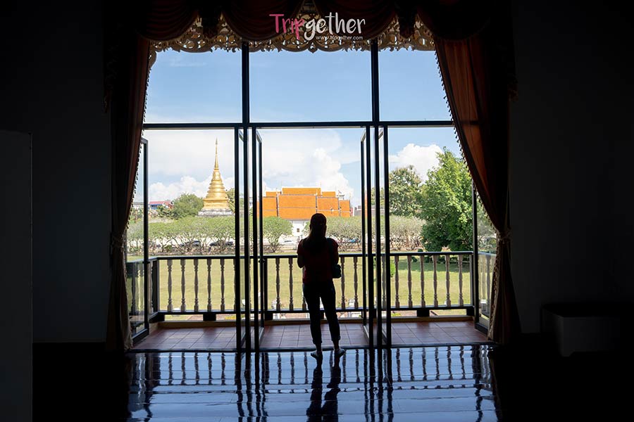 มองจากด้านบนชั้น 2 ของพิพิธภัณฑ์จะมองเห็นอุโมงค์ลีลาวดีและวัดพระธาตุช้างค้ำวรวิหารอยู่ไกลออกไป