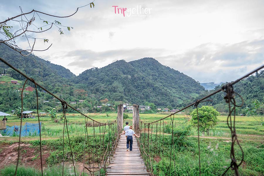 ต่อด้วย สะพานแขวนสะปัน มุมถ่ายรูปสุดชิคที่คุณลุงเจ้าของโฮมสเตย์แนะนำให้เราแวะมาเที่ยวกันดู ซึ่งก็ไม่ผิดหวังจริงๆ มาที่นี่ได้รูปเท่ๆ กลับไปเปลี่ยนโปร์ไฟล์กันได้เพลินเลย