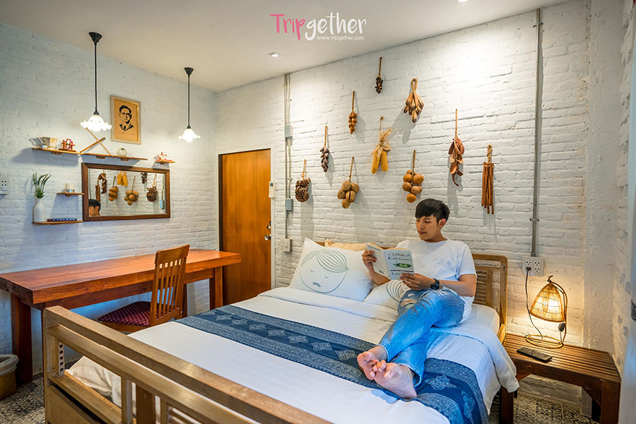สำหรับที่พักคืนนี้เป็นที่พักสไตล์วินเทจ บรรยากาศน่ารัก ภายในห้องพักตกแต่งได้อย่างน่านอนทีเดียว แถมยังมีมุมให้ถ่ายรูปเล่น พักผ่อนกันได้หลายจุดอีกด้วย