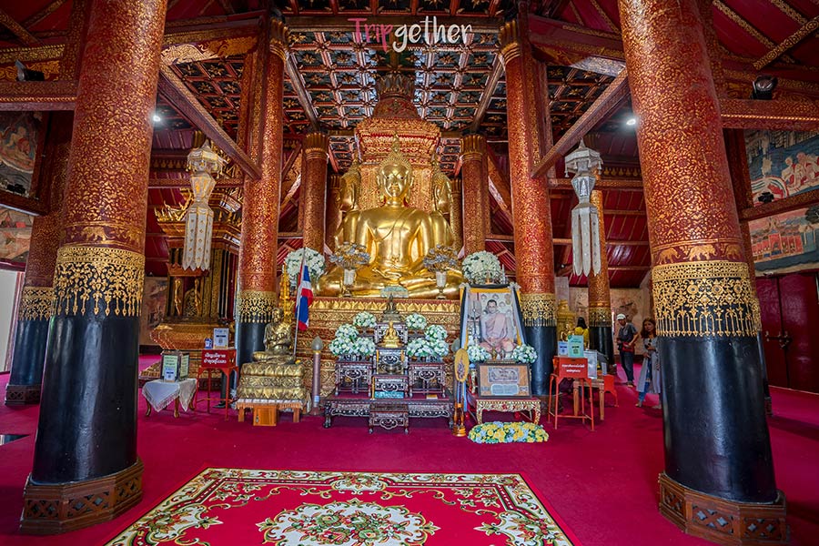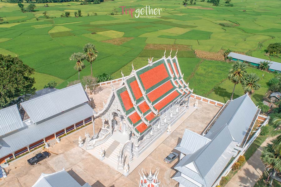 บริเวณพื้นที่รอบๆ วัดยังมีจุดชมวิวสวยกลางนาให้ได้เช็คอินถ่ายรูปกันอีกด้วย สำหรับใครที่อยากมาช่วงนาเขียวๆ แนะนำให้มาตั้งแต่ช่วงกลางเดือนกันยายน ต้นข้าวกำลังเขียวขจีสวยงามแน่นอน