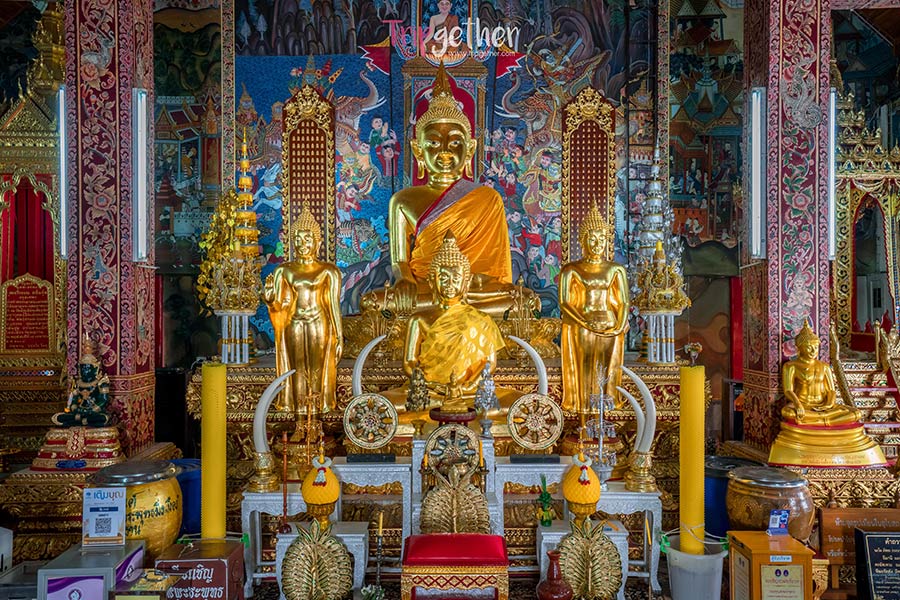 บริเวณตรงกลางประดิษฐานพระพุทธรูปปางมารวิชัยขนาดใหญ่ 4 องค์ หันพระพักตร์ออกด้านประตูทั้งสี่ทิศ