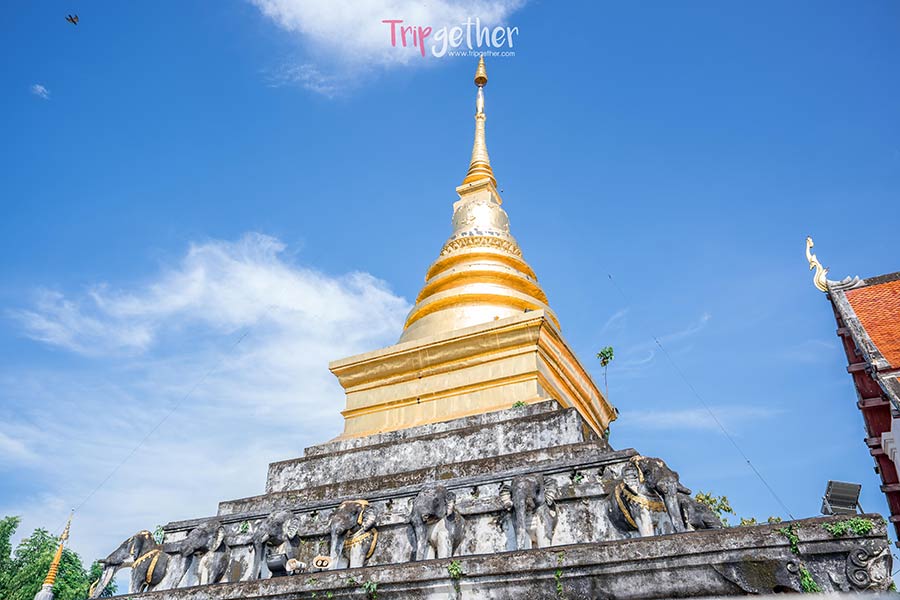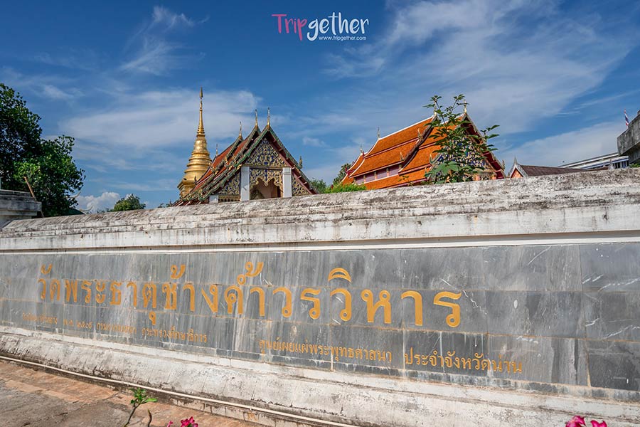 จากวัดมิ่งเมือง เราเดินย้อนกลับมาทางวัดภูมินทร์ เพื่อไปยังที่จอดรถของเรา เลยได้แวะเที่ยวชมอีกหนึ่งวัดสำคัญของน่านอย่าง วัดพระธาตุช้างคำ้วรวิหาร ซึ่งเป็นที่ประดิษฐานพระบรมสารีริกธาตุไว้ภายใน บริเวณรอบๆ เจดีย์มีรูปปั้นช้างปูนอยู่บริเวณฐาน