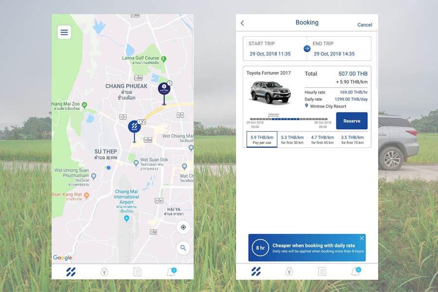 สำหรับการเช่ารถผ่าน Haupcar.com ก็ง่ายๆ เพียงแค่โหลด แอพพลิเคชั่นลงบนมือถือ ซึ่งรองรับทั้งระบบ IOS และ ANDROID เมื่อติดตั้งและสมัครการใช้งานเรียบร้อยแล้ว หน้าแอพพลิเคชั่นจะโชว์ตำแหน่งจุดจอดรถ รุ่น และยี่ห้อของรถ เพื่อให้ตรงกับความต้องการของผู้ใช้งาน นอกจากนี้ในแอพพลิเคชั่นยังสามารถระบุเวลา วันที่รับรถ และคืนรถ เพื่อคำนวนค่าใช้จ่าย และยังสามารถเลือกได้อีกว่าจะใช้บริการแบบเหมาจ่ายเป็นรายวัน หรือเลือกจ่ายเป็นกิโลเมตร ให้เราได้คุมงบค่าเดินทางแบบไม่มีบานปลาย